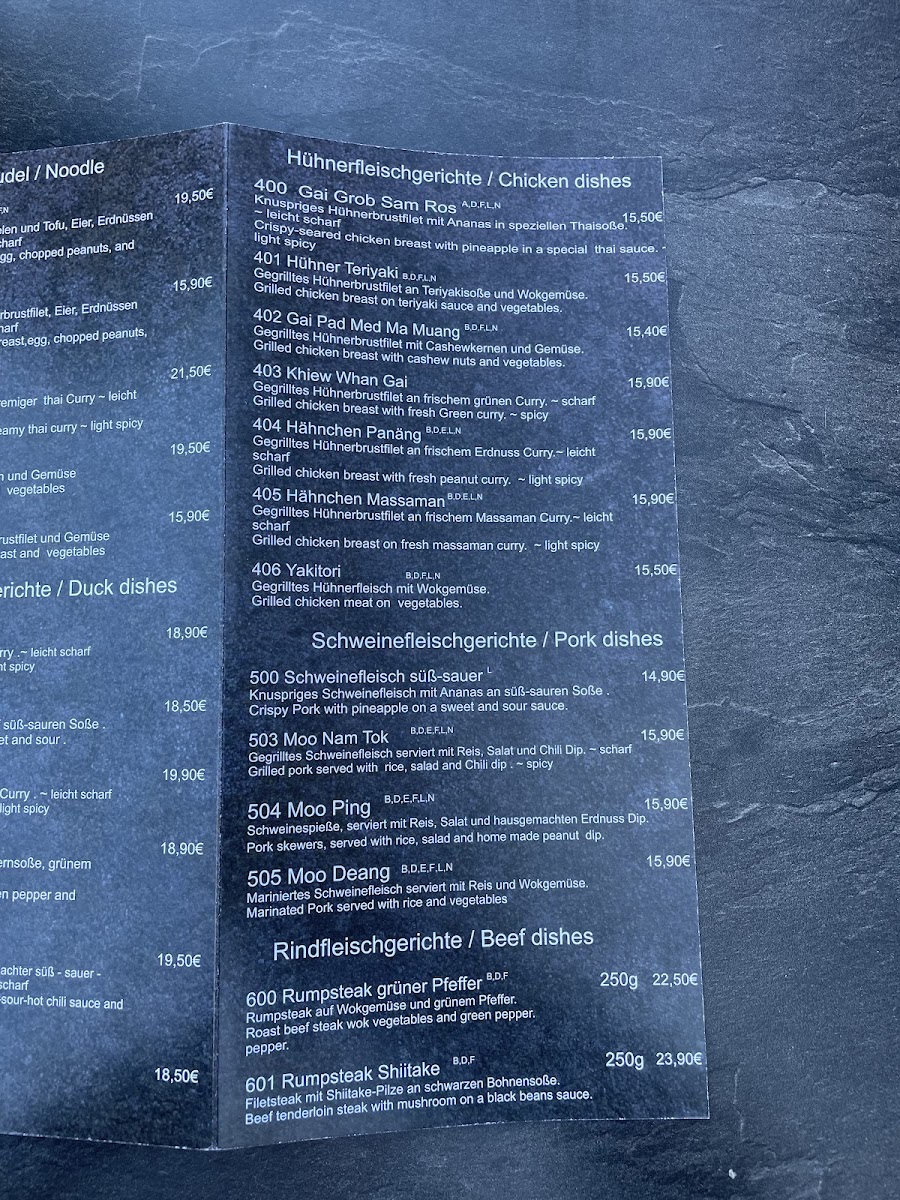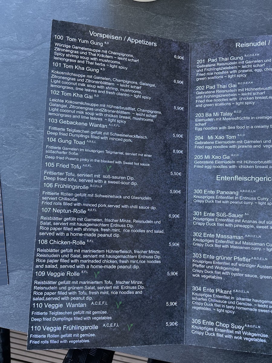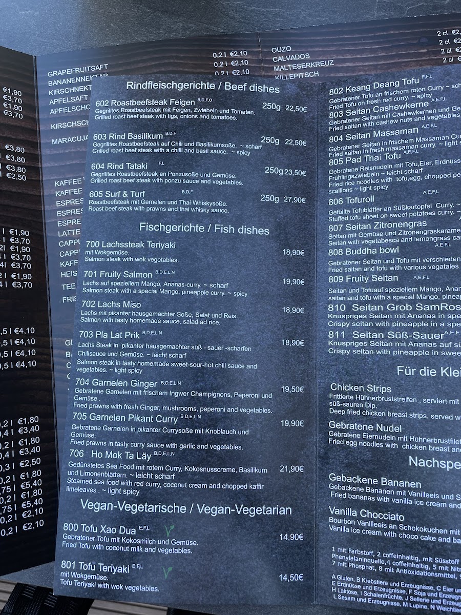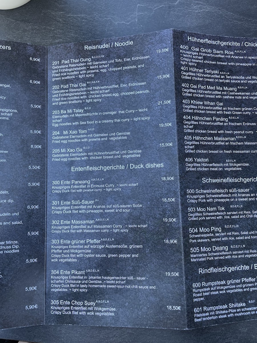 Pikant Restaurant offers a tantalizing fusion of flavors that promises an exciting dining experience. Among the standout dishes, the Hähnchen Panäng Penang Chicken is a must-try for those who enjoy a rich, aromatic curry. The dish is paired perfectly with a hint of spice, creating a memorable combination. The Sambuca serves as an excellent appetizer, offering a burst of flavor with every bite, while the Spring Roll adds a delightful crunch. For those craving something more indulgent, the Duck is expertly prepared, balancing tenderness with a crispy exterior. The Moo Nam Tok offers a flavorful, slightly tangy meat experience, showcasing the restaurant's mastery of bold, vibrant tastes. Vegetarians will enjoy the Phad Thai Tofu, a classic dish brimming with fresh ingredients and balanced flavors. On the drink side, the Strawberry Caipirinha&Singing Bamboo cocktail is a refreshing, fruity option that pairs well with the savory dishes. For a more adventurous option, the Enter Massaman is a great choice, with its rich, spiced sauce enveloping tender meat. The Cocktail Mai Tai is a crowd favorite, delivering a tropical kick that complements the diverse menu. The Chicken-rolle is another dish that stands out, offering a perfect combination of juicy chicken and flavorful spices. Lastly, the Surf And Turf is a luxurious choice, combining land and sea in one irresistible dish. Pikant Restaurant's menu expertly blends bold flavors, making it an unforgettable destination for anyone looking for a vibrant culinary experience.
